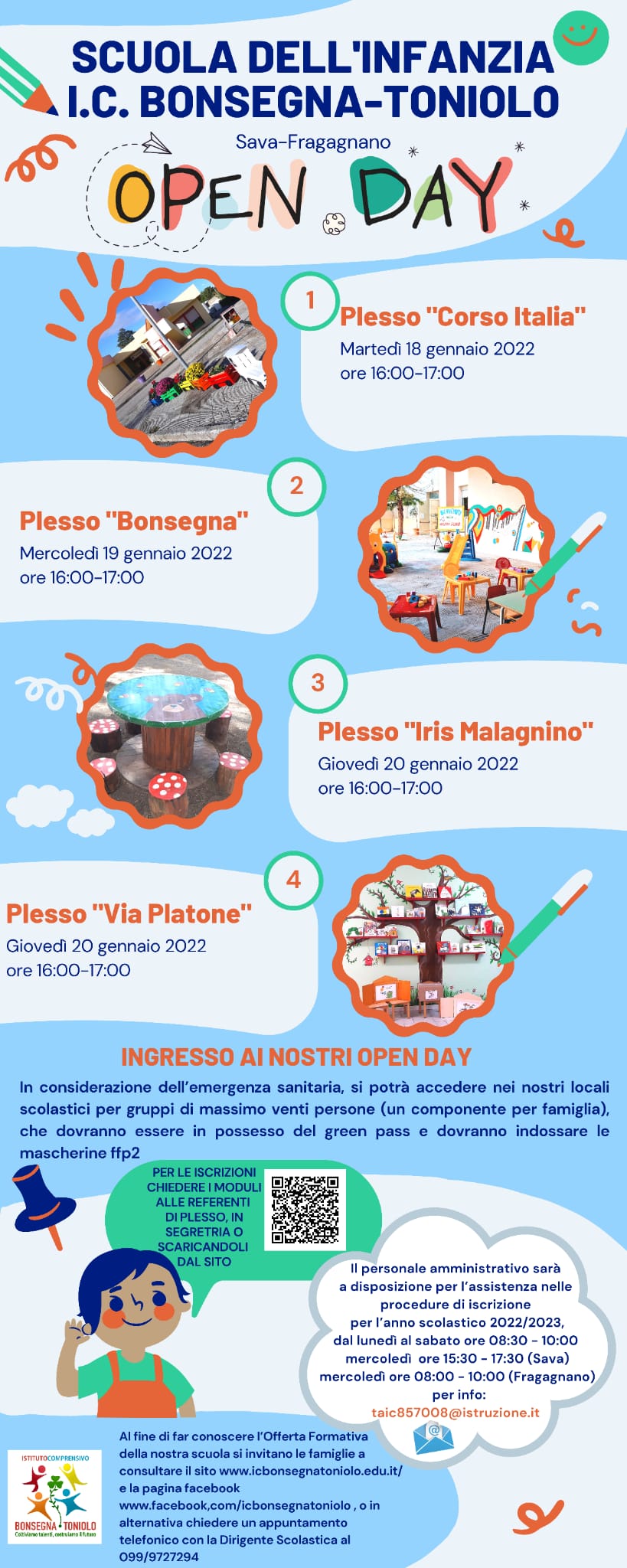 Per tutti gli ordini di scuola è possibile effettuare le iscrizioni per l'anno scolastico 2022/2023 dal 4 gennaio al 28 gennaio 2022. Per informazioni sull'offerta formativa della nostra scuola, il Dirigente scolastico è lieto di invitare i genitori agli incontri online tramite Meet che si svolgeranno secondo il calendario di seguito riportato.