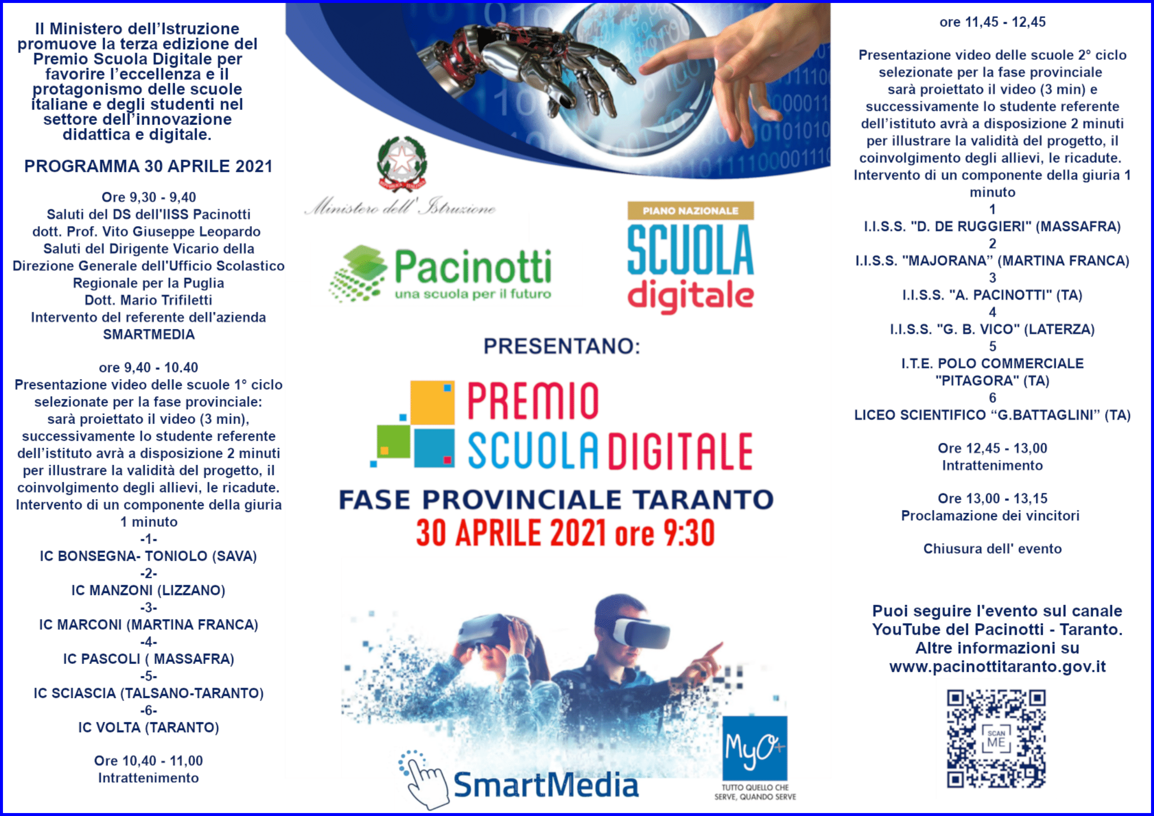La nostra Istituzione scolastica ha partecipato alla terza edizione del Premio Scuola Digitale, iniziativa promossa dal Ministero dell'Istruzione per favorire l'eccellenza e il protagonismo delle scuole e degli studenti nel settore dell'innovazione didattica e digitale. Potremo seguire i nostri alunni che presenteranno il progetto di robotica educativa realizzato nella nostra scuola, selezionato per la fase provinciale, venerdì 30 aprile ore 9:30.