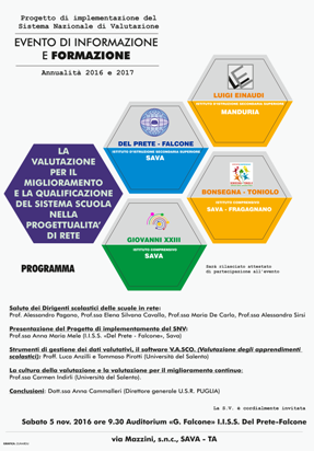 Nell'anno scolastico 2015/2016, il nostro Istituto ha partecipato al Progetto in rete di implementazione del Sistema Nazionale di Valutazione "La cultura della valutazione: dai dati valutativi alla progettazione del miglioramento".